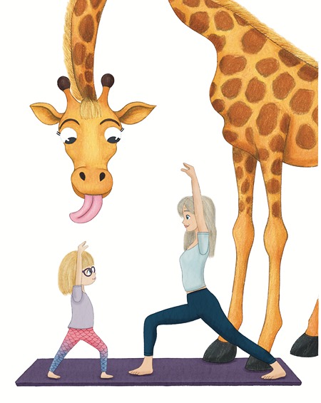 It’s helpful to create scenarios that your young yoga partner can relate to and visualize easily. If they’re into airplanes, be Air Force One taking off during Warrior III, or stick the landing strip in a cargo plane on the African Savannah in Locust Pose. Bring in details they can relate to and then let the youngster take the lead for a while.